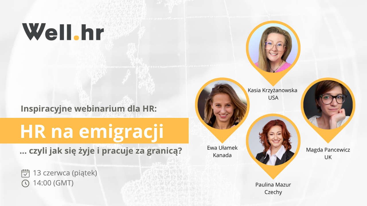 Zapraszamy na szczery i praktyczny webinar „HR na emigracji – jak się żyje i pracuje za granicą?”. Cztery polskie ekspertki HR opowiedzą, jak wygląda praca w branży w Kanadzie, USA, Czechach i Wielkiej Brytanii.